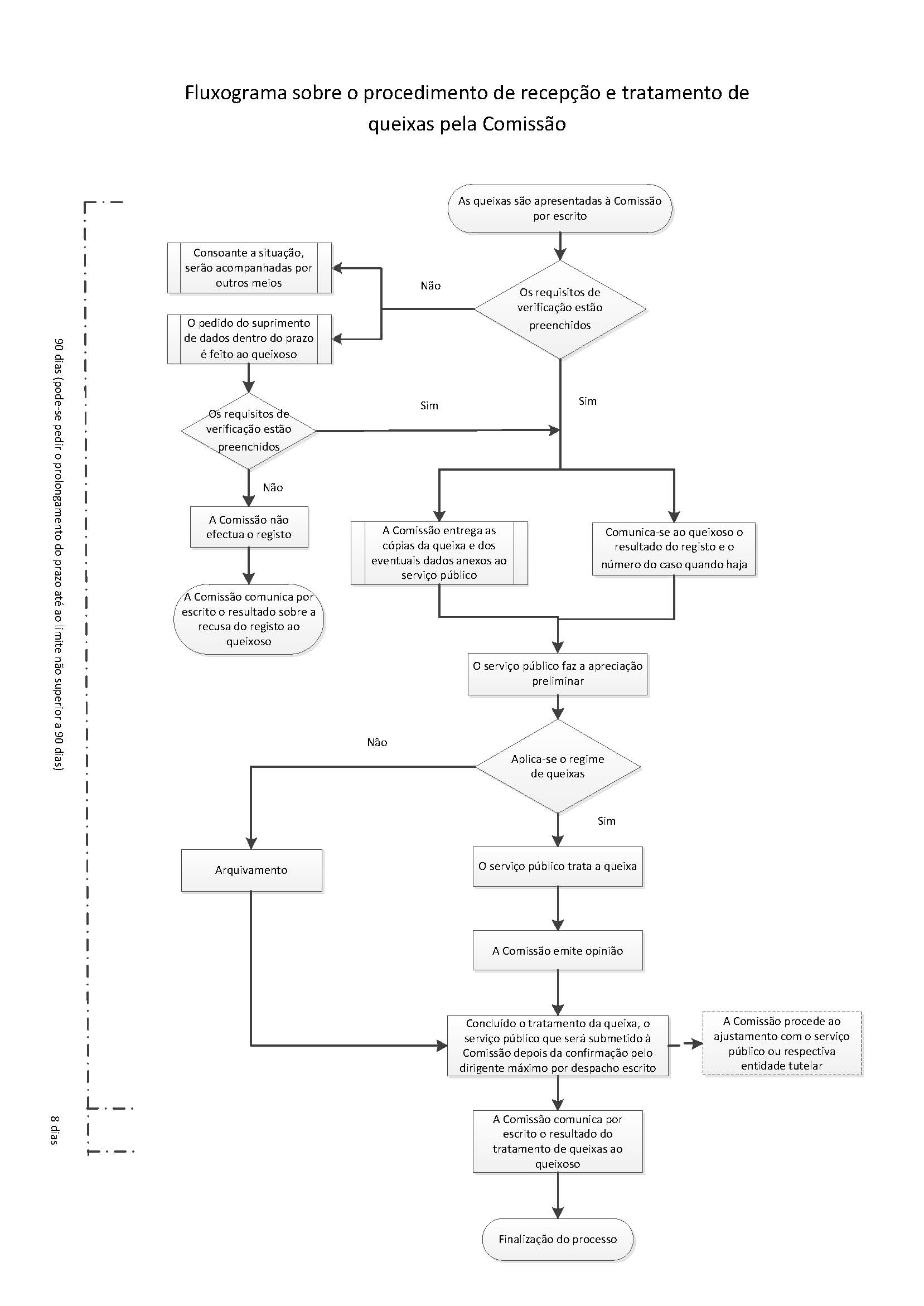 Fluxograma sobre o procedimento de recepção e tratamento de queixas pela Comissão